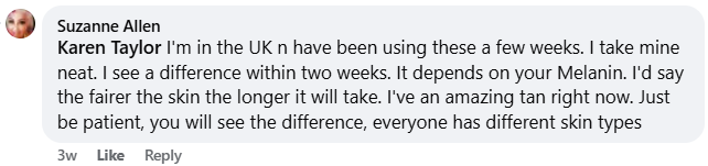 The drops help you tan faster with less UV needed, but skin protection always comes first. So wear SPF, avoid overexposure (start with short sessions), and listen to your body.